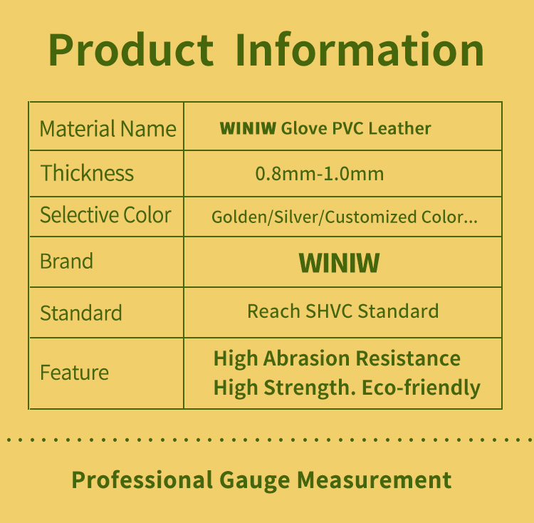 شركة WINIW هي شركة رائدة متخصصة في إنتاج ومعالجة وتصدير مجموعة متنوعة من منتجات الجلود الصناعية. يتميز مصنعنا بتصنيع جلود PVC وPU وMicrofiber، المصممة خصيصًا لتلبية احتياجات مختلف الصناعات. تُستخدم هذه المواد متعددة الاستخدامات على نطاق واسع في الأحذية والملابس والأثاث وديكورات السيارات الداخلية والأمتعة والقفازات وغيرها. بفضل خدماتنا المتميزة للمصانع الخارجية المتخصصة في تصنيع المنتجات الجلدية، تُعتبر WINIW شريكًا موثوقًا به في تقديم التميز.
