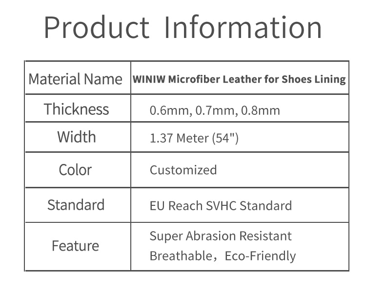 WINIW مورد رائد لأقمشة الجلد خفيفة الوزن لأحذية بطانة البولي يوريثان، حيث تخدم ماركات الأحذية، ومُصنّعيها، ومُبتكري الأحذية المُريحة حول العالم. تُعالج هذه المادة مشكلةً رئيسيةً في بطانات الأحذية: الأقمشة الثقيلة التي تُضيف حجمًا وتُسبب إرهاقًا للقدم عند ارتدائها لفترات طويلة. على عكس مواد بطانة البولي يوريثان العادية السميكة والثقيلة، يجمع نسيج الجلد خفيف الوزن من WINIW بين خصائص خفة الوزن الفائقة وملمس الجلد الناعم واللطيف على البشرة، مما يُخفف من وزن الحذاء الإجمالي ويُعزز الراحة. صُمم خصيصًا لأحذية بطانة البولي يوريثان، مُكمّلًا مادة البولي يوريثان الخارجية لخلق هيكل حذاء متماسك وخفيف الوزن.