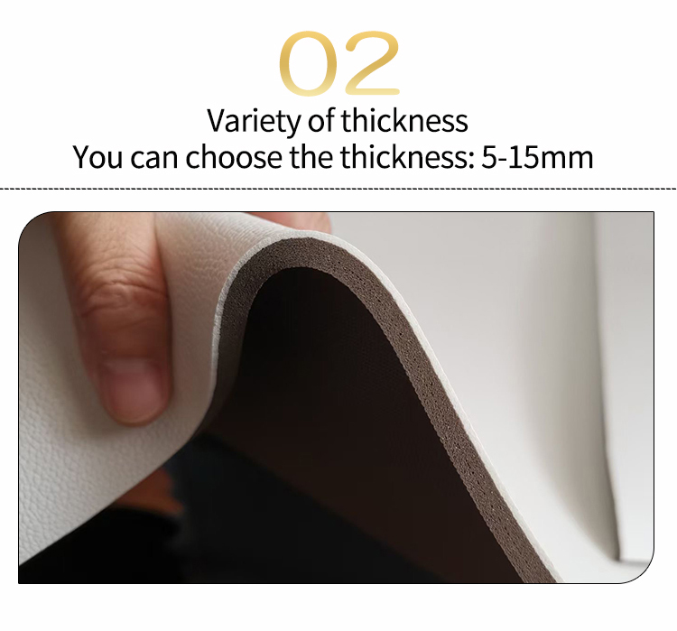 عمليًا، يتميز بمقاومته للماء والبقع، حيث يطرد بسهولة انسكاب القهوة وعلامات الحبر وغبار المكتب بمسحة بسيطة. هيكله المعزز يمنع التآكل، بينما قاعدته المرنة والصلبة تبقى مسطحة على أي مكتب دون أن تتجعد. سهل القطع بأحجام مختلفة - من وسائد السفر الصغيرة إلى سجادات المكتب الكبيرة - يناسب مختلف الاستخدامات. يضفي ملمس الجلد الصناعي الفاخر لمسة أنيقة على مساحات العمل، مما يجعله الخيار الأمثل للمكاتب المنزلية، وأجهزة الألعاب، ولأغراض الترويج للعلامات التجارية.